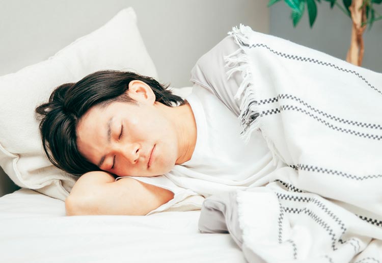 閉塞性睡眠時無呼吸症候群は、呼吸をする際の空気の通り道(気道)が一時的に閉塞することで生じる病気です。仰向けで寝ていると、重力の影響で舌が落ち込みます。それに加えて睡眠中は筋肉の緊張が緩み、さらに気道が狭くなります。